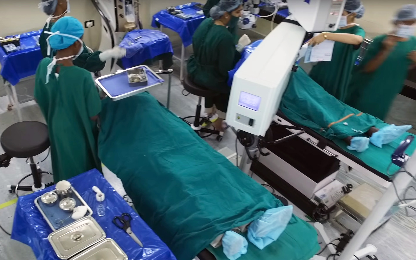 Von Anfang an setzte Dr. V. daher auf „Eye Camps“, bei denen Mitarbeiter der Klinik aufs Land fahren und dort mobile Screening Center aufbauen. Die Einheimischen werden untersucht. Alle, die eine Operation brauchen, werden mit dem Bus ins Krankenhaus gebracht und nach der OP und ein paar Tagen der Überwachung zurückgebracht. Aus eigener Tasche könnten sie sich die Fahrt meist nicht leisten.